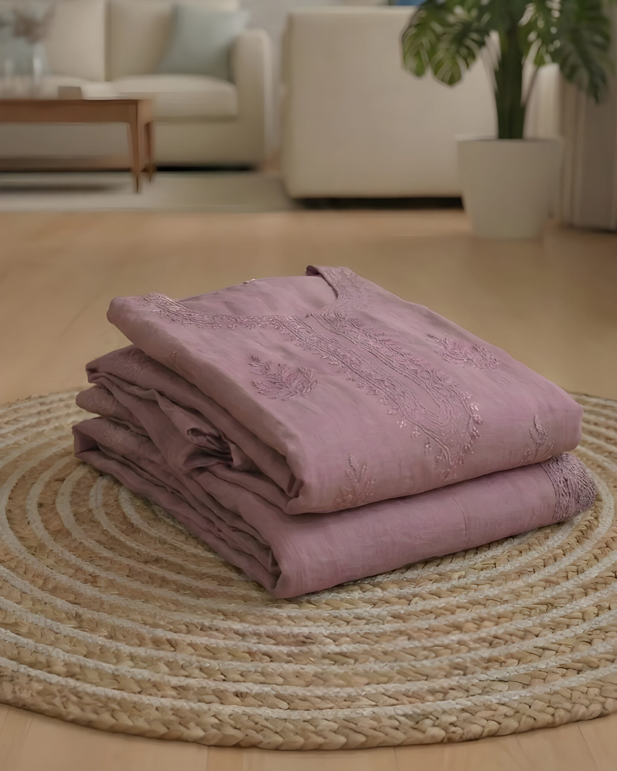Lucknow Chikankari Suit with Dupatta – Pink Shades
