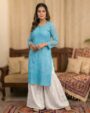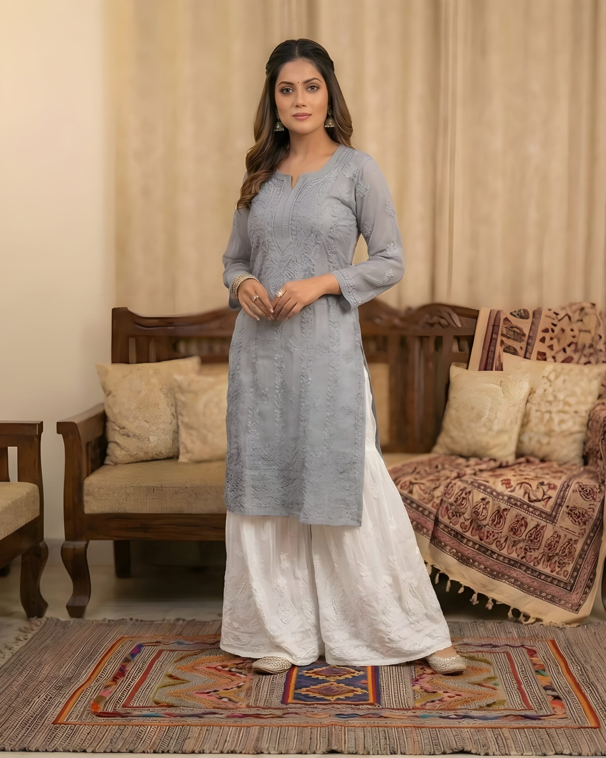 Elegant chikankari kurti set with inner. Lightweight chikan fabric suitable for daily and festive wear.